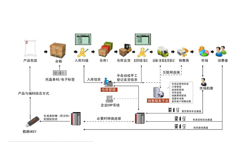 倉儲(chǔ)環(huán)節(jié):從生產(chǎn)(貼)到入庫(可選擇兩套系統(tǒng),掃描入倉和直接不掃描入倉。)直至市場查詢(消費(fèi)者、稽查人員等)等流通環(huán)節(jié)查詢等功能上,善進(jìn)產(chǎn)品防偽防竄解決方案都具有無法比擬的完整性和靈活性。除此之外,產(chǎn)品防偽防竄解決方案所具備的保證安全性的加密功能,功能的可擴(kuò)性以及高效的運(yùn)作成本,都顯示出無比的優(yōu)越性。善進(jìn)“數(shù)字化流向監(jiān)管系統(tǒng)”集成解決方案強(qiáng)大的防偽防竄全方位跟蹤追溯效果,穩(wěn)定的產(chǎn)品性能,專業(yè)的售后服務(wù),正在幫助更多的企業(yè)實(shí)現(xiàn)完善的產(chǎn)品跟蹤防偽、防竄貨管理。