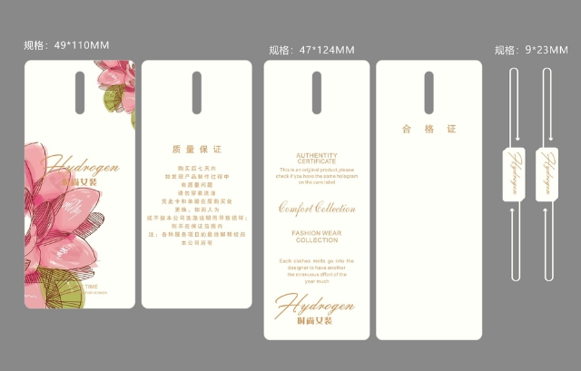 另外,近年還出現(xiàn)了用全息防偽材料制成的新型吊牌。再從它的造型上看,則更是印刷多種多樣的:有長(zhǎng)條形的,對(duì)折形的,圓形的,三角形的,插袋式的以及其它特殊造型的,真是多姿多彩,琳瑯滿目。 服裝防偽吊牌的設(shè)計(jì),印刷往往都是很精美的,而且內(nèi)涵也是很廣泛的。